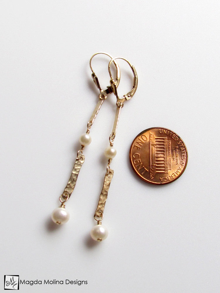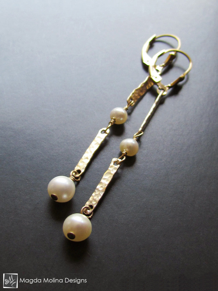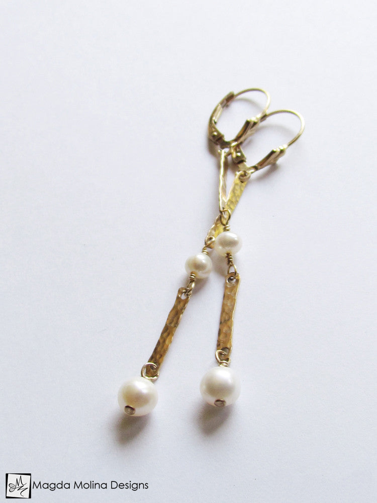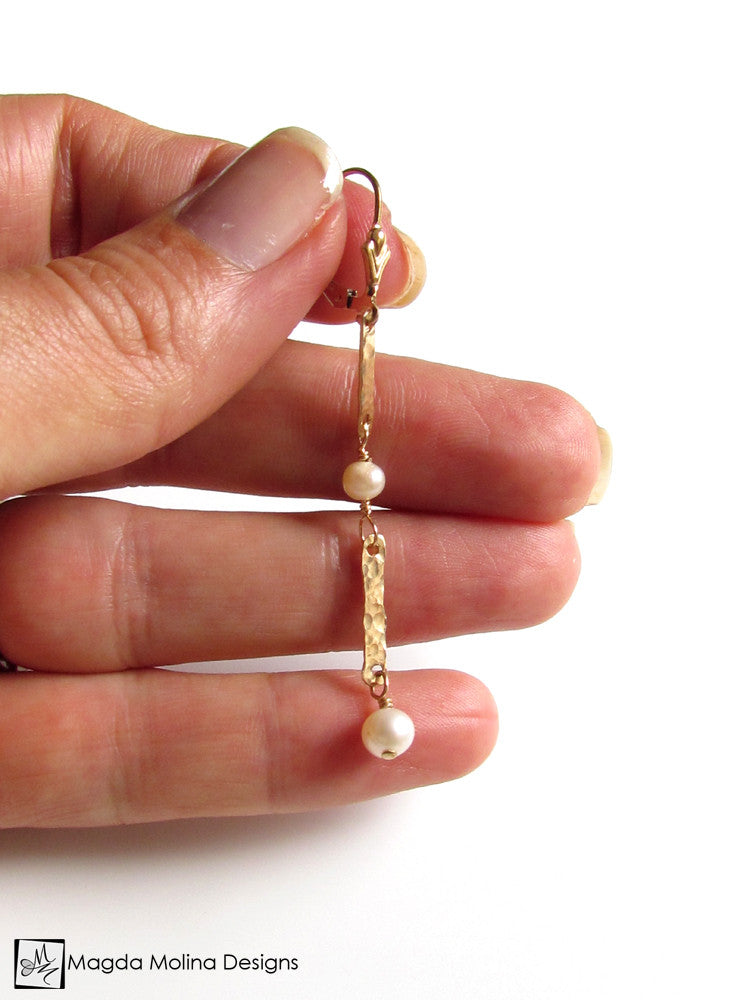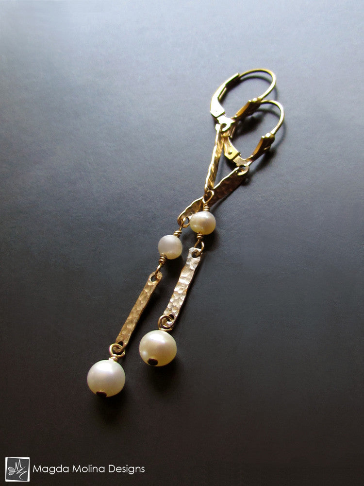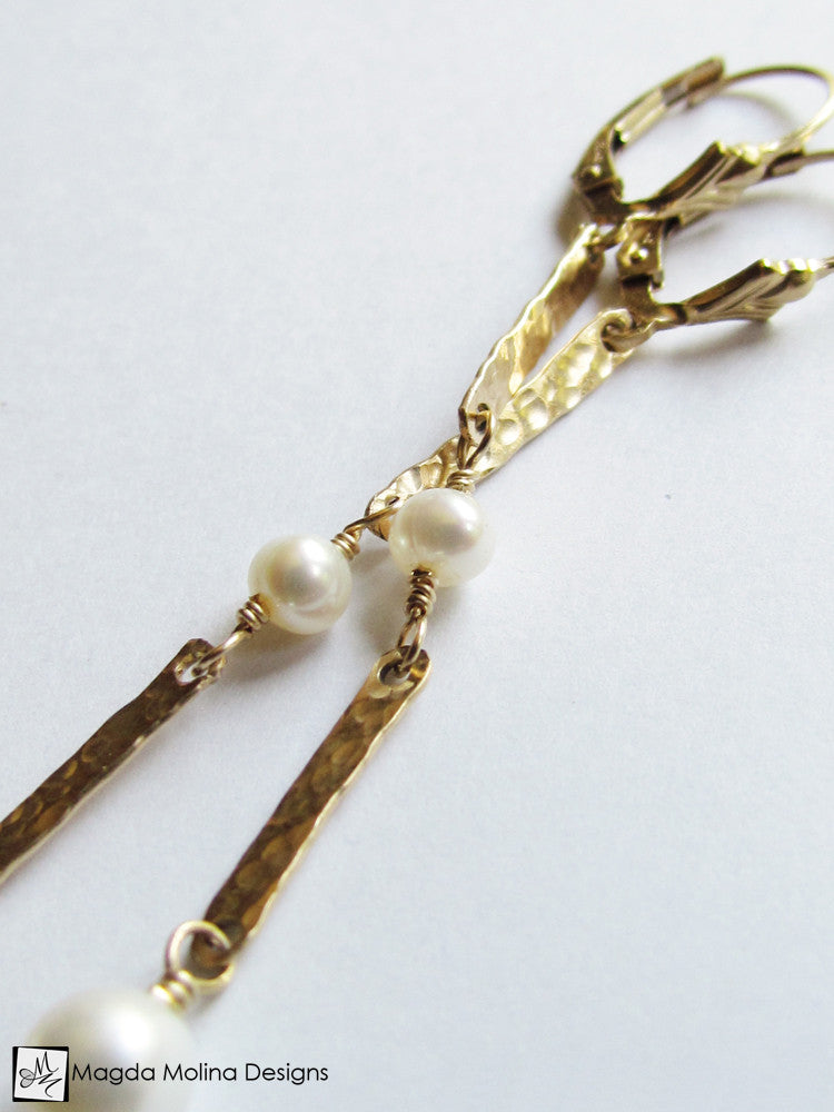 The Hammered Gold Bars And Pearls Dangle Earrings