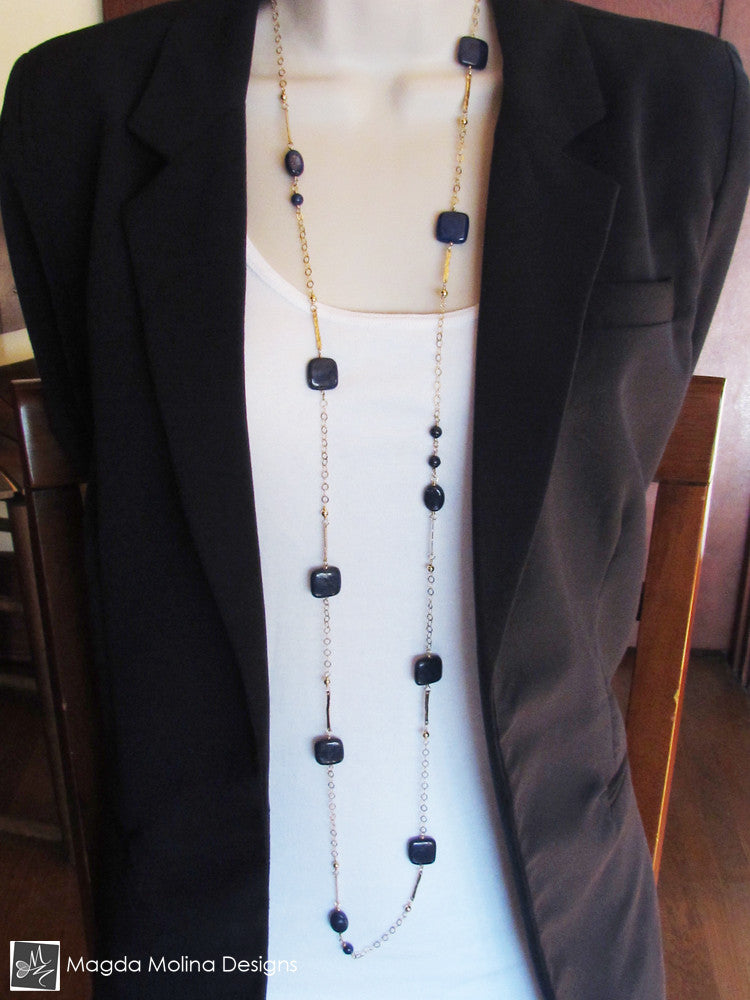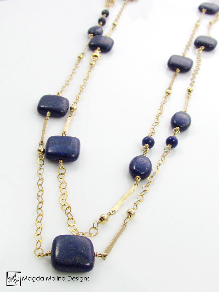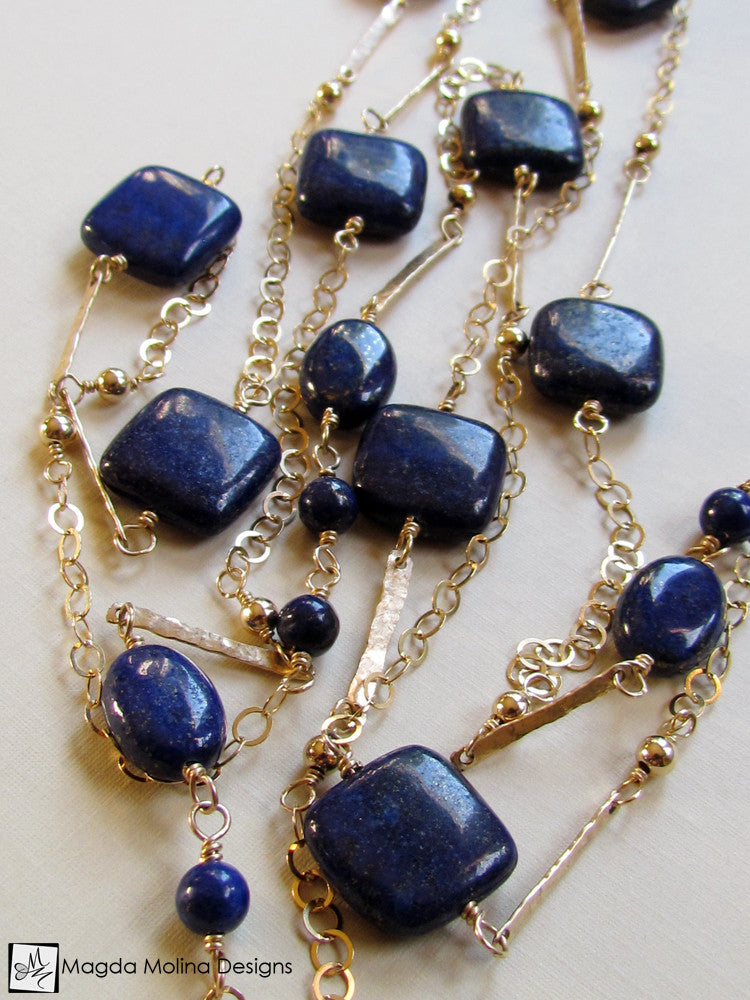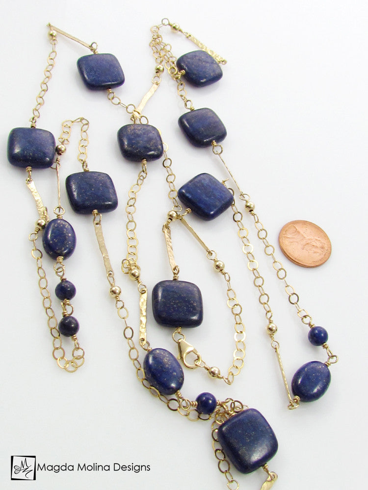 The Long And Elegant Lapis Lazuli and Hammered Gold Necklace
