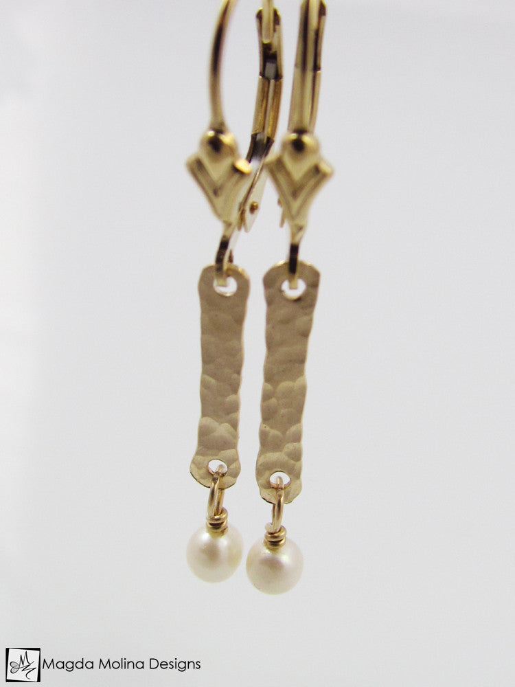 The Mini Hammered Gold Bars And Pearls Dangle Earrings